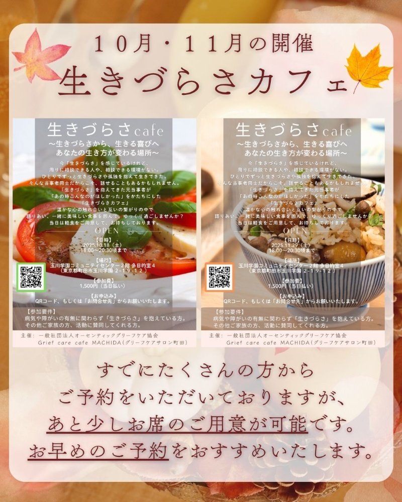 さて、11月・12月の『生きづらさカフェ』のご予約が開始しております。