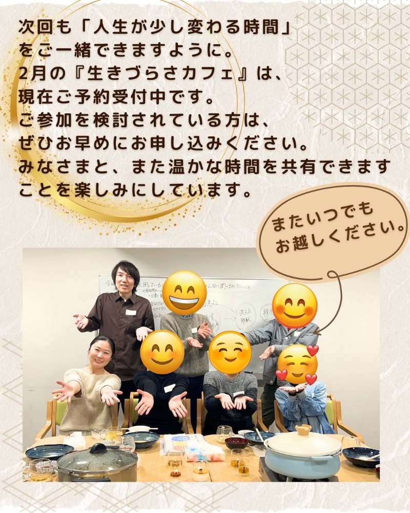 2月の『生きづらさカフェ』は、現在ご予約受付中です。