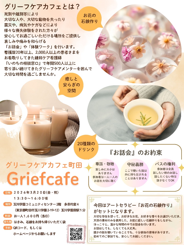 3月のグリーフケアカフェは、アートセラピー「お花の石鹸作り」がセットになっております。