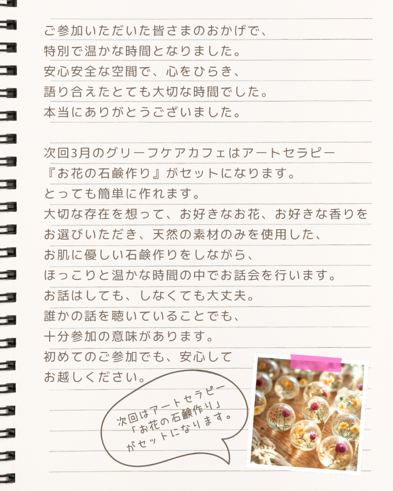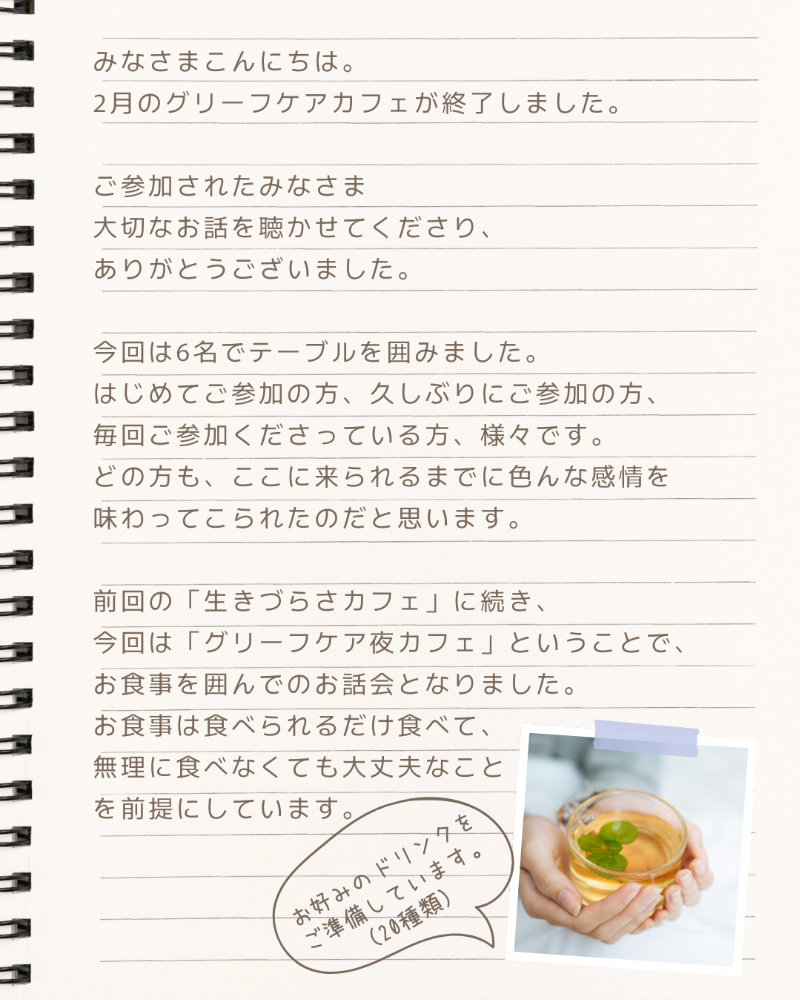 2月のグリーフケアカフェが終了しました。