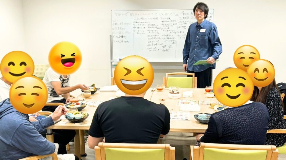 | 自己紹介 | 最初に自己紹介をお願いしております。様々な立場の方がいらっしゃいますが、ここでは全員が対等な立場であることを大切に、ニックネームで呼び合います。居心地の良いニックネームを設定いただき、どちらから来られたか、可能な方は、どんな生きづらさを抱えているか、お話できる範囲で、最初に少しご紹介いただきます。 |
